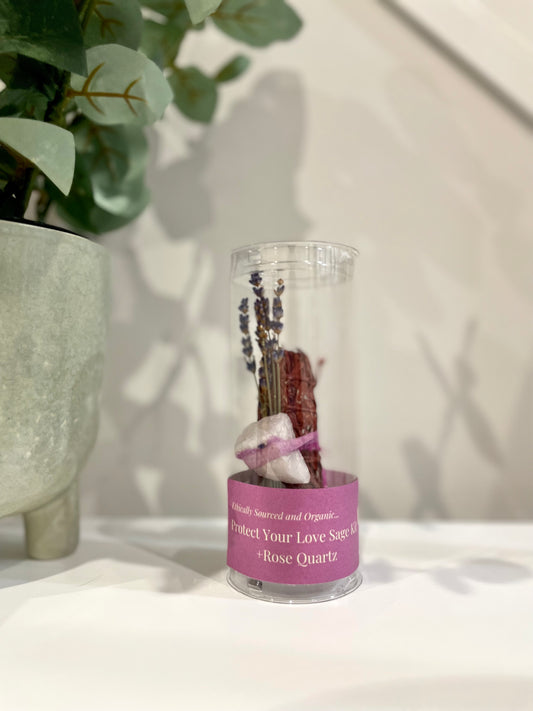 Protect Your Love Smudge Kit - Dragon's Blood Sage and Lavender - Rose Quartz