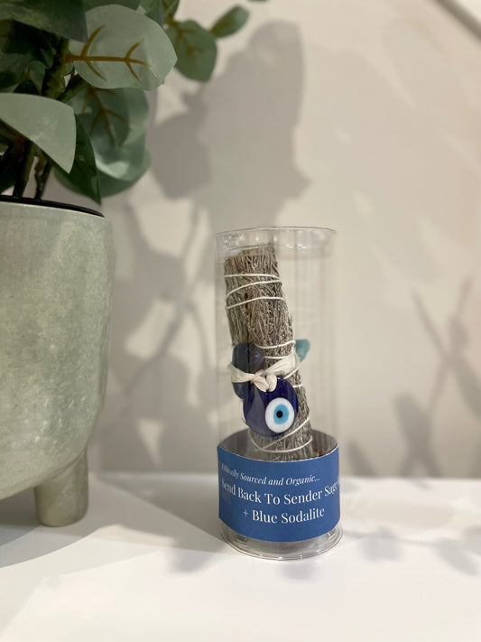 Return Back To Sender Sage Kit + Blue Mountain Sage + Evil Eye Charm + Blue Sodalite