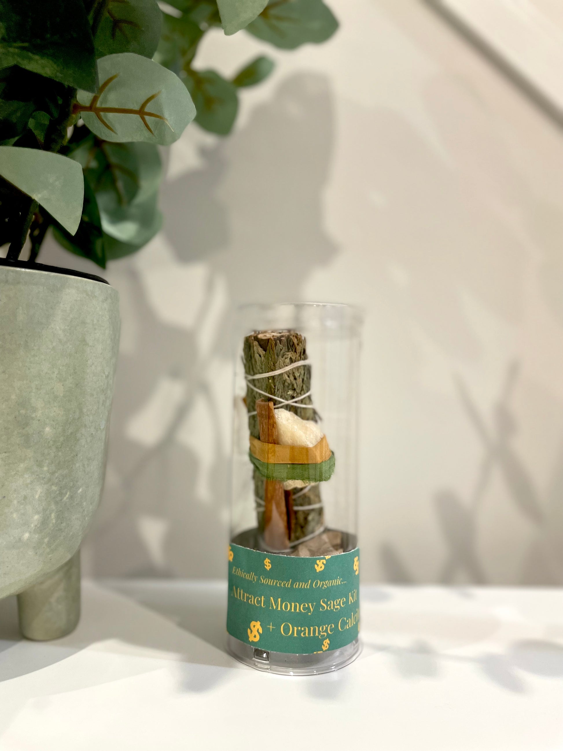 Attract Money Smudge Kit- Cedar + Cinnamon Stick + Orange Calcite
