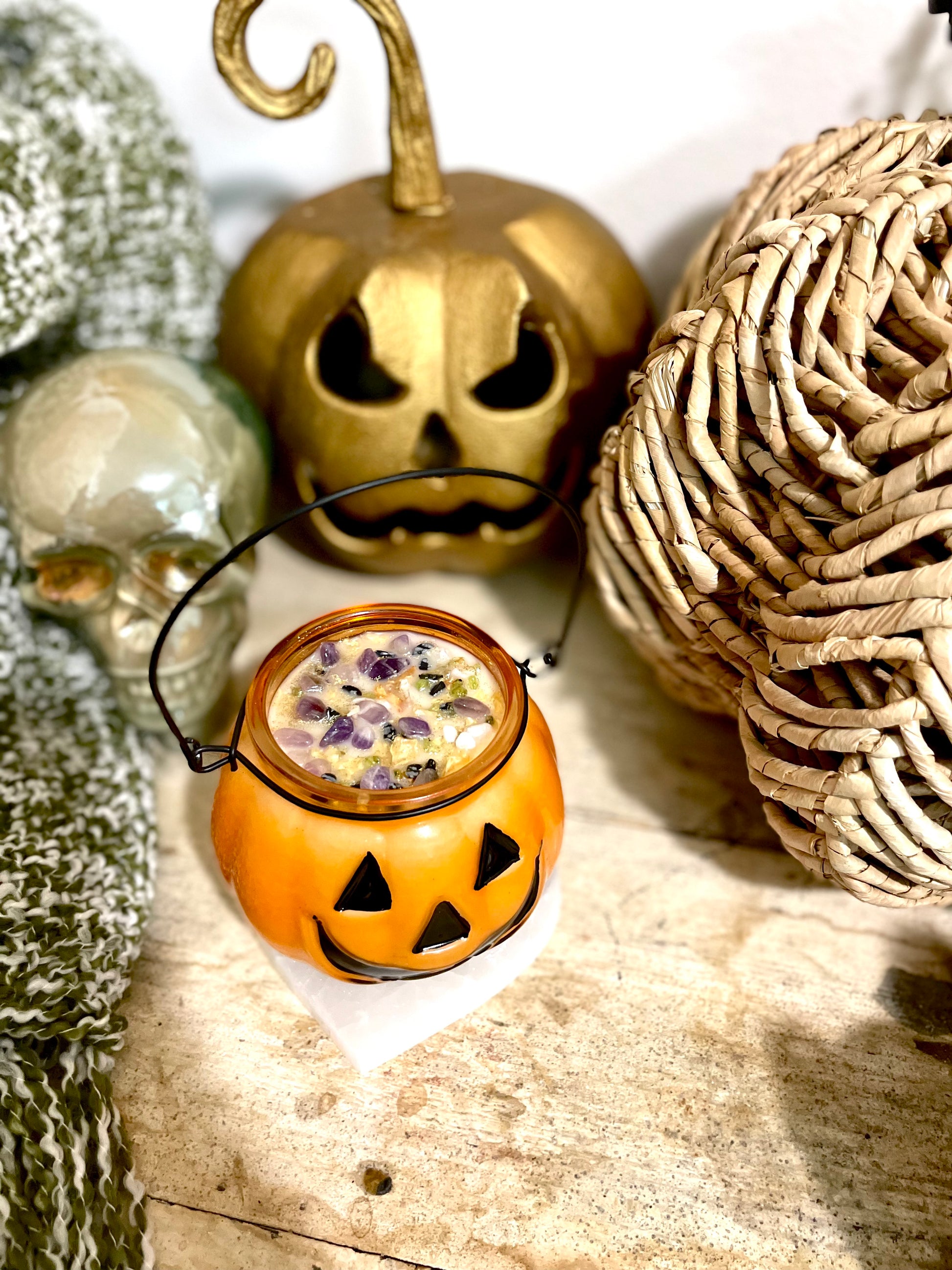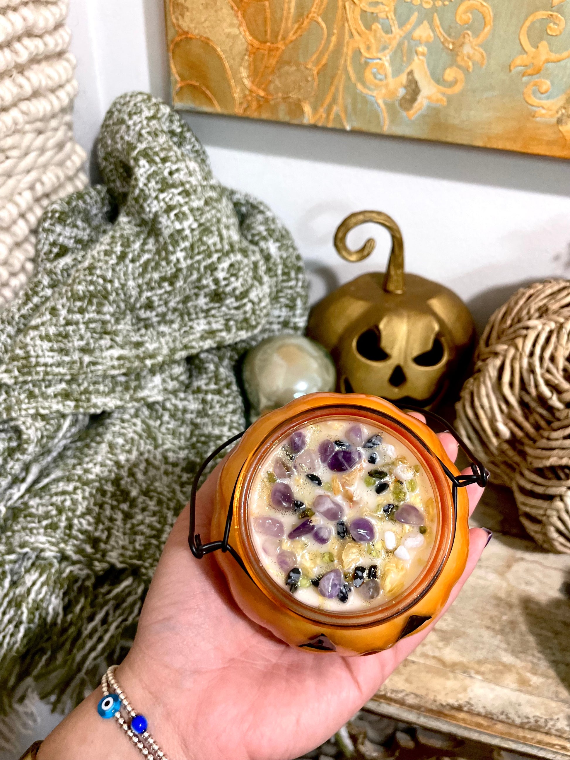 Topped with amethyst, peridot, snowflake obsidian, jasmine buds & biodegradable gold glitter.